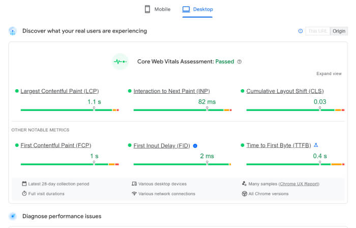 - Interaction to Next Paint (INP) helps measure the responsiveness of your pages accessed by the users.